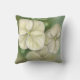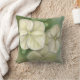 Este travesseiro decorativo é embelezado em cada lado com trabalho de arte em cores pastéis moles, mostrando três florescimento de hidrangea de folha branca cremosa com botões acentuados em verde.