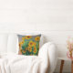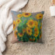 Travesseiro com o Buquê de pintura de óleo de girassóis de Claude Monet (1881). Lindos girassóis num vaso azul sobre uma mesa vermelha. Um presente de excelente para fãs do impressionismo e da arte francesa.