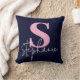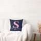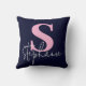 Monogram Lettered Script Navy Blue and Pink Throw Pillow. Stylishly personalize with your monogram initial.