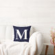 Monogram Modern Minimalist Navy Blue and White Throw Pillow. Stylishly personalize with your monogram initial.