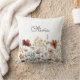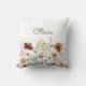 Apresentando nosso monograma de aquarela, Bonito Travesseiro decorativo Floral de flor selvagem. Apresentando ilustração aquosa de flores de campo silvestre e texto que pode ser personalizado no estilo elegante de boho. Adequado como presente para amantes da natureza ou como presente para a menina.