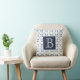 O design azul e branco nítido destaca esta almofada monogramada para um acento perfeito em sua casa. A estampa country francesa tem um apelo vintage. O monograma pode ser personalizado ou removido para tornar esta almofada sua! Ótima ideia de presente único!