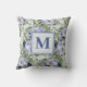 Azul, branco e cinzento, marinho e azul-água poeirento floral em travesseiro decorador de monograma branco. Personalize com a sua inicial.