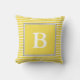Este travesseiro amarelo tem um teste padrão listrado no fundo. Há uma inicial branca customizável no centro de um quadrado amarelo. Personalize este travesseiro decorativo com o monograma do receptor.