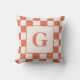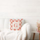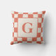 O travesseiro na moda apresenta um grande monograma de laranja escuro personalizado no centro dentro de um quadrado esbranquiçado com um padrão de borda de aterramento e creme. Adicione a sua inicial na barra lateral. Os quadrados alternantes laranja e bege queimados formam o padrão geométrico em negrito ao redor das bordas. Para ver mais itens Terracotta e Creme marcados, clique no link "Artes Rocklawn".