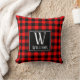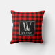 Travesseiro decorativo de xadrez de búfalos vermelho vivo e preto moderno, com monograma e nome familiar personalizáveis, funcionaria como excelente para uma casa, cabana e estilo fazenda rústica, ou para decoração de férias e/ou um presente personalizado.