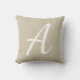 Simples travesseiro de monograma fofo em bege com uma grande letra de guião moderna.
