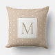 Este travesseiro monograma clássico apresenta bolinhas brancas sobre um fundo de bege quente. Personalize o monograma castanho e branco com sua escolha inicial.