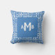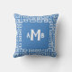 Almofada Monograma de Borda Chave Grega reversa do Cobalto