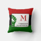 CELEBRE O Travesseiro decorativo DO MÊS. JUNETEENTH. Este é um Travesseiro decorativo moderno, na moda CELEBRADO JUNETEENTH Monograma, mostrando o design de um punho de força verde com faixas vermelhas, pretas e verdes no fundo. A saudação diz CELEBRATE JUNETEENTH, e à direita há um MONOGRAMA vermelho. Todo texto é PERSONALIZÁVEL para que você possa alterar ou excluir conforme necessário. Esta design Junteeth é repetida ao contrário.