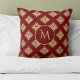 Almofada Monograma de Cor damasco Dourada em Vermelho