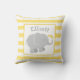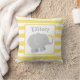 Este travesseiro para berçário ensolarado apresenta um elefante cinza com detalhes em coração amarelo em um centro branco, emoldurado por listras amarelas e brancas. O monograma do nome personalizado da criança adiciona um toque pessoal. Um acessório alegre e neutro em termos de gênero para qualquer berçário, sala de brinquedos ou quarto de criança. Personalize o nome para um presente atencioso para o bebê.