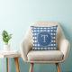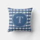 Almofada Monograma de Gingham Branco e Azul Escuro