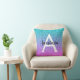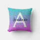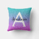 Rapariga e glam púrpura, lilac, aqua e tartaruga a sereia brilha o nome do monograma ombre e o travesseiro decorativo inicial. Personalize com seu nome personalizado em preto e seu monograma inicial em branco. Você pode alterar a cor do texto, o estilo e o tamanho da fonte usando a opção personalizar.
