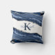 Travesseiro de decorador elegante projetado com mármore/agate azul marinho com listras prateadas com brilho. Personalizado com seu monograma/nome e inicial.