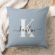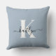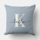 Almofada Monograma de Script Azul Elegante Dusty