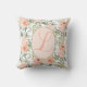 Travesseiro decorativo de Monograma Floral Coral Script - decor feminino e caseiro. Padrão floral botânico de aquarelas com cor de coral de pêssego e verde de sábado. Um monograma com script inicial define um tom elegante em qualquer sala.