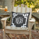 Almofada Monograma de Script de Chave Grego Preto e Branco