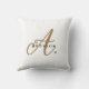 Travesseiro decorativo de Monograma Dourado de Script Preto Elegante