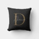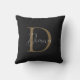 Travesseiro decorativo de Monograma do Dourado Script de Mídia Negra Moderna