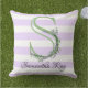 Almofada Monograma de tiras brancas, púrpuras, lavanda
