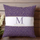 Travesseiro decorativo com o Purple Dourado Raindrop Modern Trendy impressão com o seu nome e inicial na frente, combinando com o contrário. Adicione sua própria mensagem ao vazio ou deixe-a. Ver toda a nossa decoração na nossa loja Zazzle!