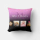 Faça sua própria colagem de fotos da família. Use quatro, quatro das suas fotos favoritas de seus filhos, família, amigos ou animais de estimação! Moderno e glamouroso com uma cor preta e violeta de fundo. Modelos para o seu monograma e nome. Letras brancas e roxas. Com ouro confetti como decoração.