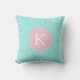 Almofada Monograma do Padrão-Chave Grego-Rosa e Aqua
