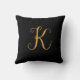 Monograma de cor dourada "K" a preto, travesseiro decorativo.