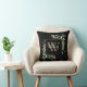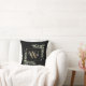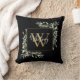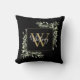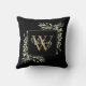 O verde impermeável de aquarela deixa travesseiro decorativo de nome de monograma floral com um primeiro monograma de ouro em fundo preto com o seu nome definido num guião branco na moda. Projetado por Thisnotme©