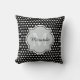 Seja fofo e giro com este travesseiro decorativo de padrão de bolinhas preto e branco com um monograma moldado por na moda. Adicione um toque personalizado a este design bonito adicionando seu nome e monograma inicial.
