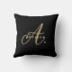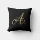 Almofada de Monograma Elegante Preto Dourado em Script