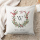 Monograma elegante travesseiro decorativo de Feriado de Natal Merry apresenta uma bela coroa vermelha e verde de verde de inverno com uma amora vermelha festiva.