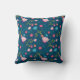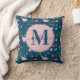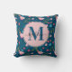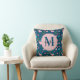 Almofada de Monograma Flor Borboleta Rosa Azul Marinho Chic