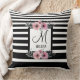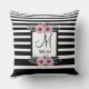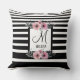 Almofada Monograma Floral Cor-de-rosa com faixas brancas e