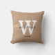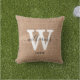 Travesseiro de monograma familiar com fundo impressão de burlap rustic. O travesseiro de estilo do país pode ser personalizado com a letra inicial do seu monograma, o nome da família e o ano estabelecido. NOTA:A burvolta é apenas um efeito impresso e não é real.