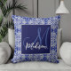 Travesseiro inicial de monograma azul elegante. Este design azul apresenta seu monograma inicial e sobrenome em cinza clara, a tipografia moderna impressa em um plano de fundo de cinza azul geométrico com padrão. Este design elegante da moda é perfeito para o seu quarto, sala de família ou sala de estar. Personalize este travesseiro na moda com o monograma inicial e sobrenome da sua família para criar o seu travesseiro decorativo personalizado. Você pode alterar todas as cores e fontes do texto, clicar para personalizar ainda mais abaixo da área de personalização do texto que o levará à ferramenta design. Um presente único para aniversário, feriados e qualquer ocasião especial. Seja para dia de os namorados, Natal ou como um presente em geral, faz uma ideia de presente excelente