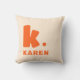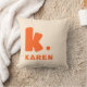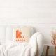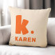 Travesseiro decorativo que apresenta o seu monograma inicial em uma fonte grande, em negrito e o seu nome abaixo. Texto laranja sobre fundo mais leve. As cores são personalizáveis na ferramenta design.