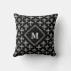 Travesseiro decorativo moderno e na moda com padrão geométrico branco CROSS contra um fundo preto rico. No centro há um monograma personalizável, que você pode substituir por seu próprio. O mesmo design também está no sentido inverso. Ideal para atualizações de decoração doméstica com um esquema monocromático, também para aniversários, natal, Páscoa, Ação de Graças e feriados festivos, salas universitárias, etc. Parte da coleção MONOGRAM CROSS de Designs Bereanos.