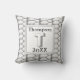 Este travesseiro monográfico é uma forma excelente de adicionar um sotaque inesperado à sua casa ou criar uma manutenção especial para um casamento ou para um lar. Um padrão geométrico de cinza prateada aparece contra um fundo branco na frente e no verso deste travesseiro. A letra "T" aparece em um quadrado com o nome da família e o ano. A carta, o ano e o seu nome podem ser personalizados rápida e facilmente. Design original - C. McGouldrick