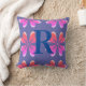Almofada Monograma Periwinkle Blue Orange Pink Flor Retrorn
