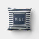 Almofada de decoração personalizada elegante e sofisticada com um monograma de iniciais em azul marinho e branco. Você pode personalizar as iniciais e escolher a cor desejada. Desenhado por Thisisnotme©