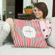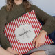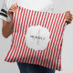 Este design apresenta um travesseiro de Natal, vermelho e branco com roteiro, um tema sazonal, de inverno, monograma, com design caprichoso, divertido personalizado com nome e nome iniciais.