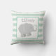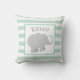 O travesseiro decorativo elefante apresenta um adorável filhote de elefante recém-nascido com salpicos em forma de coração e um fundo com padrão de stripe. Mint verde, cinza e esquema de cor branca moderno - perfeito para um menino ou menina. Personalize o texto do monograma da cinza com o nome do seu filho.