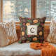 Travesseiro decorativo de Natal Botânico Russo do Monograma Personalizado. Um padrão constante de pinecones, pinças, fatias laranja, canela e anis estrelado. Complementa a decoração de Natal da floresta moderna. Personalize o modelo com o seu monograma inicial. A cor de fundo pode ser alterada. Design duplo. © Kimbellish, LLC