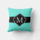 Almofada Monograma Personalizado Preto de Faixa Azul Aqua