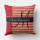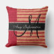 Almofada Monograma Red Strips Burlap Rustic Jute