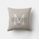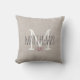 Travesseiro bege personalizado, preto e branco monograma com sobrenome familiar.