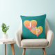 Sombras românticas do pôr do sol de matizes cor de laranja amarelo-ouro a cor-de-rosa em corações duplos com fundo verde verde verde sólido e reversível Travesseiro decorativo de Casamento. Personalize corações com iniciais de casal. O verso do travesseiro personaliza-se com os primeiros nomes e a data de casamento da noiva e do noivo. Um belo presente de casamento para os recém-casados! Design de Arte Original por TamiraZDesign.