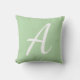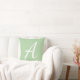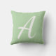 Simples travesseiro de monograma fofo em verde de espuma do mar com uma grande letra moderna de escrita.